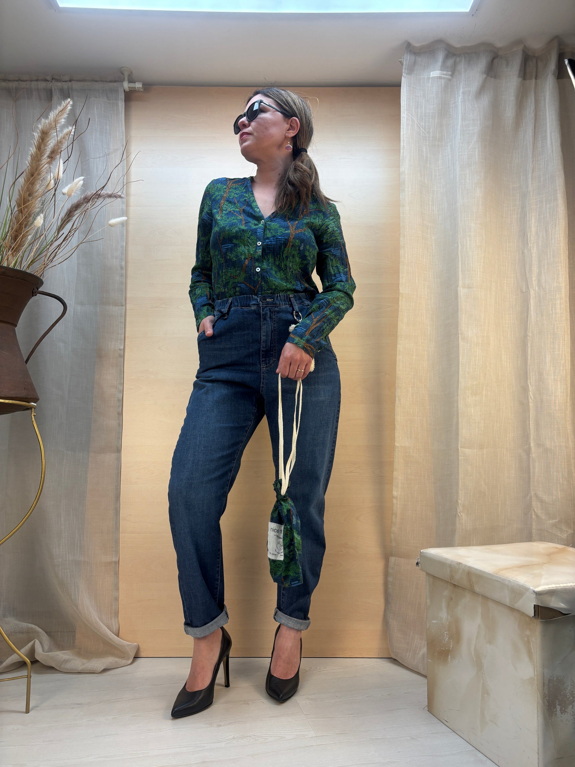 Camicia da donna no stiro in 100% cotone biologico, firmata Nice Things, brand attento alla sostenibilità. Realizzata in un tessuto di alta qualità, naturalmente traspirante e piacevole sulla pelle, garantisce freschezza e comfort per tutta la giornata. La texture leggermente stropicciata dona movimento e carattere, rendendola pratica ma distintiva.