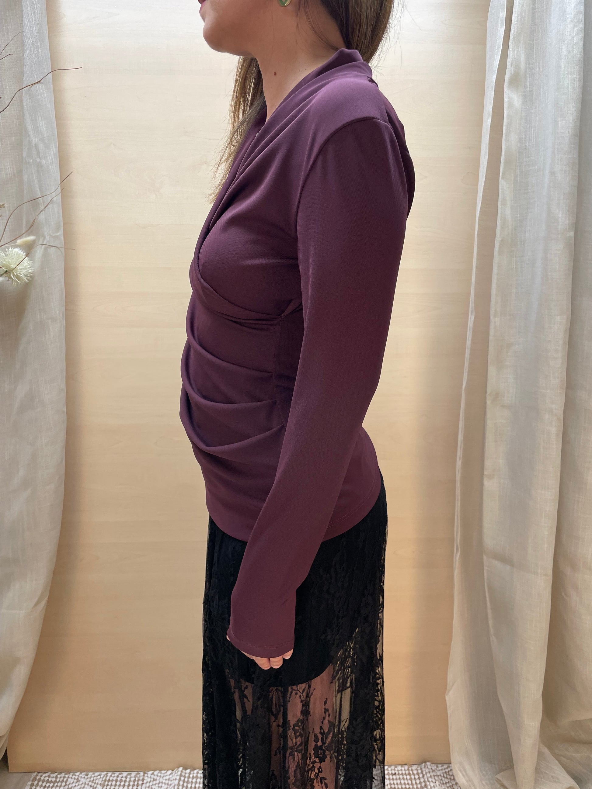 Maglia drappeggiata a maniche lunghe - Burgundy