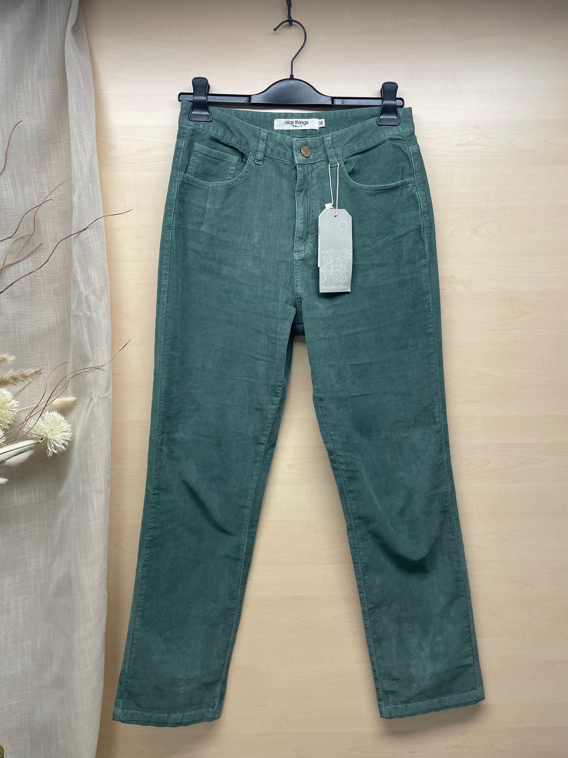 In morbido cotone e velluto a coste sottili, questi pantaloni sono un must per un guardaroba chic e contemporaneo. La nuance verde conferisce originalità e carattere, mentre le tasche garantiscono praticità e stile.