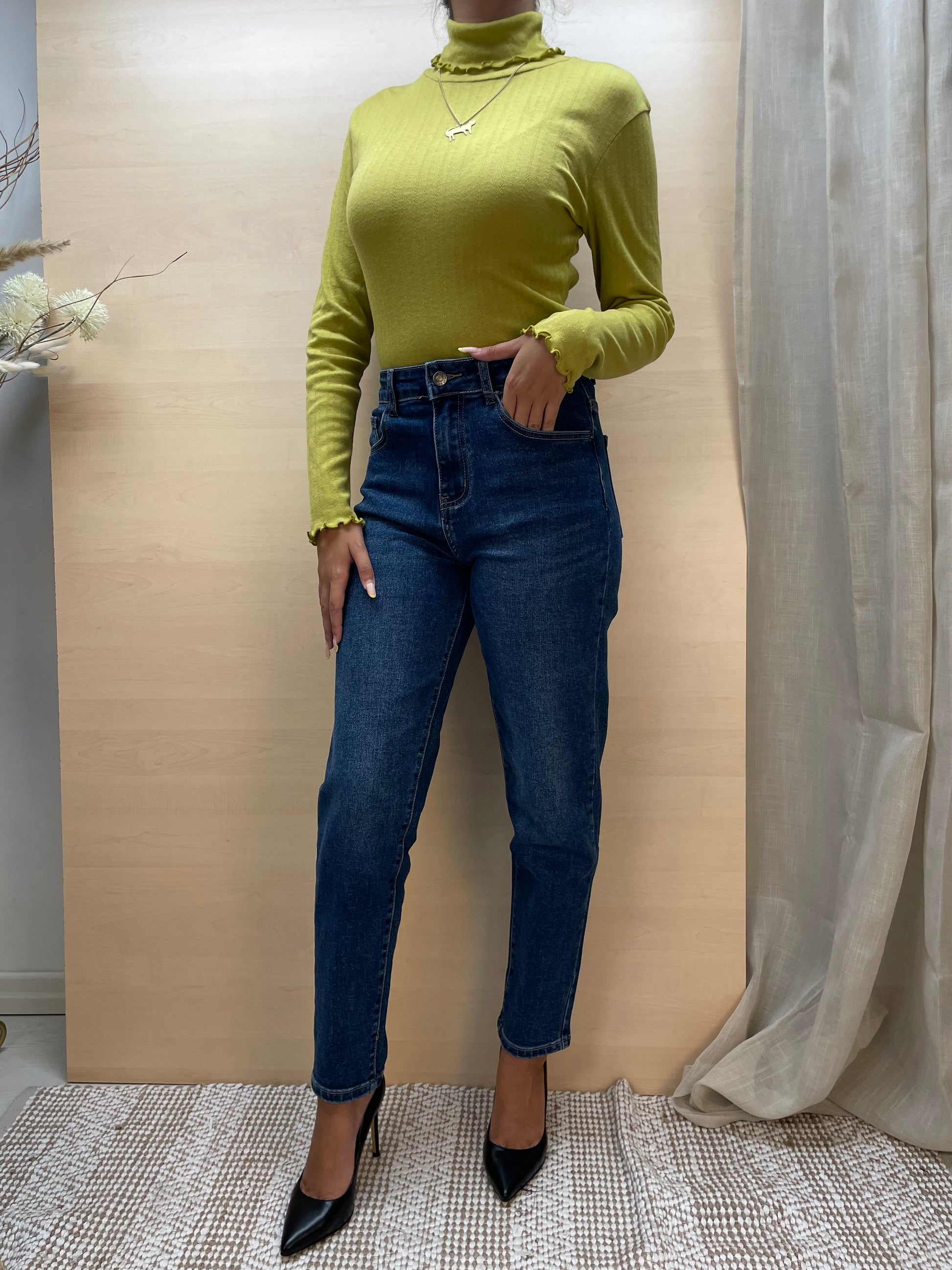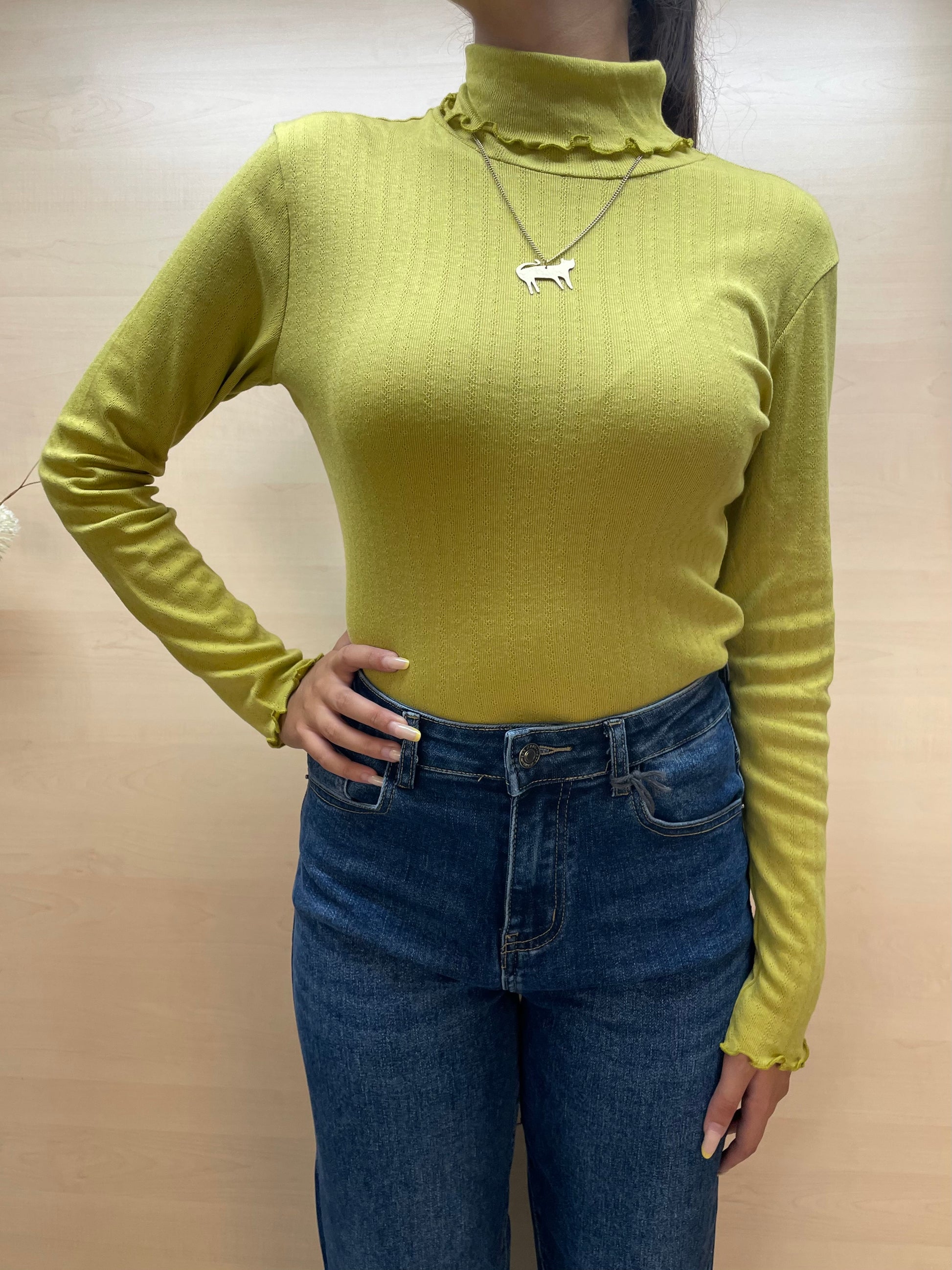 Maglia dolcevita con raffinato motivo traforato - Gialla
