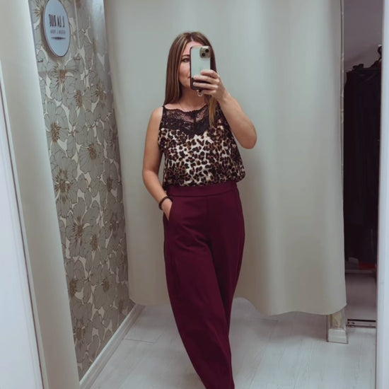 Top maculato in raso con inserto in pizzo – Made in Italy